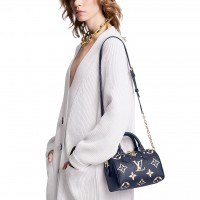 The Boite Chapeau Souple MM handbag, Nicolas Ghesquière’s reinterpretation of the classic hat box with more modern diminutive dimensions, is fashioned from Monogram Empreinte leather. The suppleness of the embossed grained leather perfectly complements the round lines of the bag’s signature shape, m..